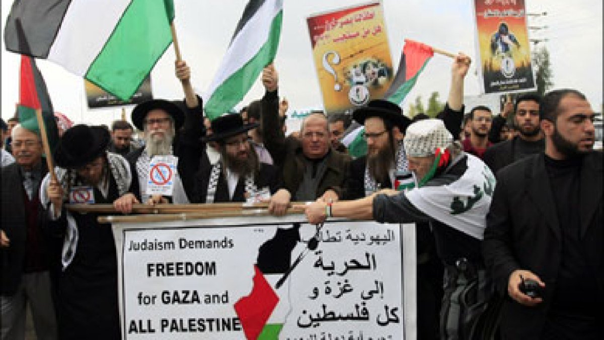 طوائف وجماعات تعتنق الديانة اليهودية وترفض المشروع الصهيوني القائم على فكرة إنشاء “وطن قومي لليهود” على أرض فلسطين، كما تنظم مسيرات تندد بالانتهاكات الإسرائيلية بحق الشعب الفلسطيني.