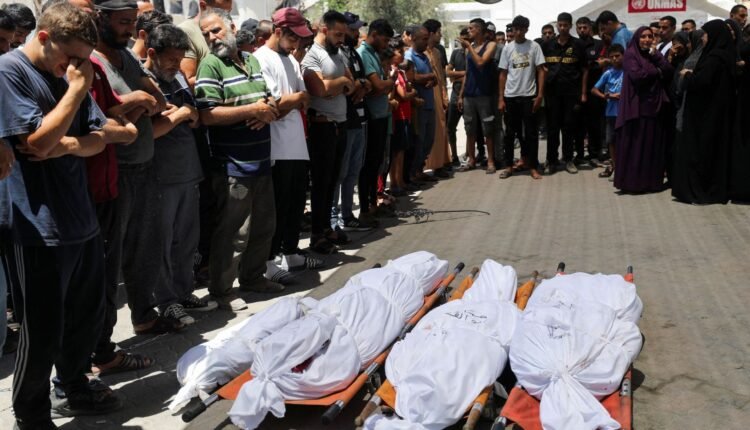وذكرت مصادر طبية أن أكثر من 25 فلسطينيا استشهدوا أمس الجمعة وأصيب عشرات آخرون بقصف إسرائيلي على مخيم للنازحين بمنطقة المواصي غرب مدينة رفح التي تضم أكثر من مليون نازح.